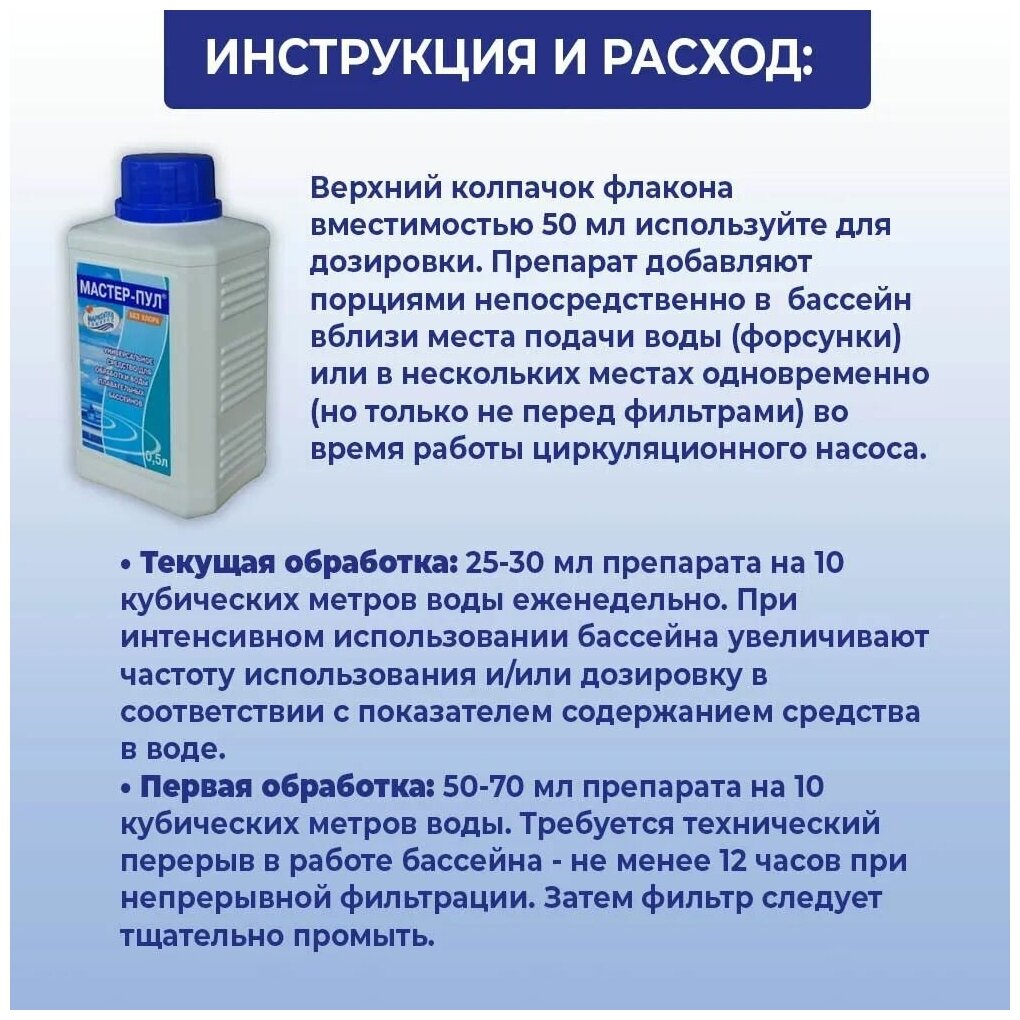 Бесхлорное средство для очистки воды в бассейне "Мастер-пул", универсальное, 0,5 л