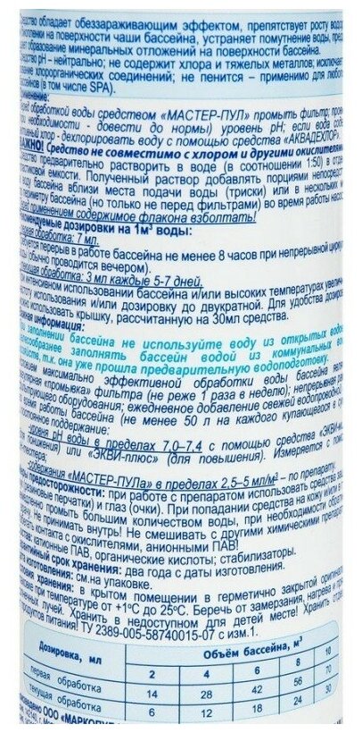 Мастер-пул (1л): Бесхлорное средство для очистки воды в бассейне 4 в 1. Маркопул Кемиклс