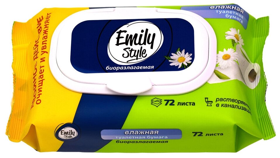 Влажная туалетная бумага Emily Style, растворяющаяся, с крышкой 72 шт