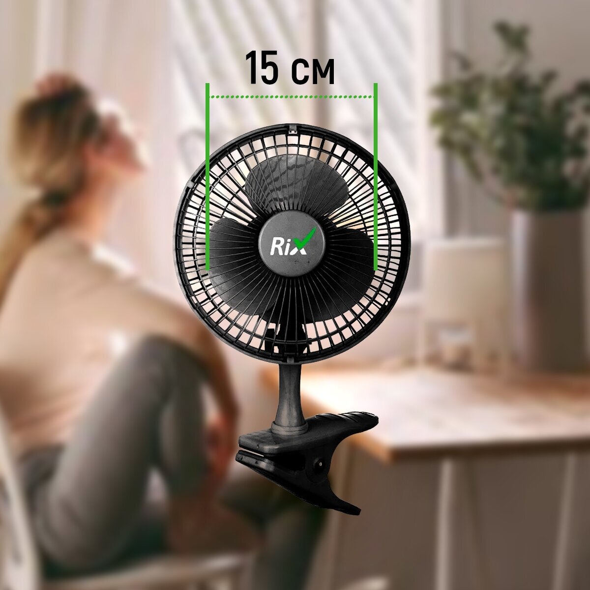 Вентилятор бытовой настольный Rix RDF-1500B, прищепка, цвет черный, 15Вт информация: