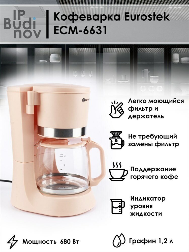 Кофеварка Eurostek ECM-6631 680Вт обьем 1,2л Бежевый информация:
