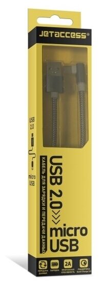 Кабель USB 2.0 - microUSB Jet.A JA-DC25 угловой 2A QC3.0 1м в оплетке серый