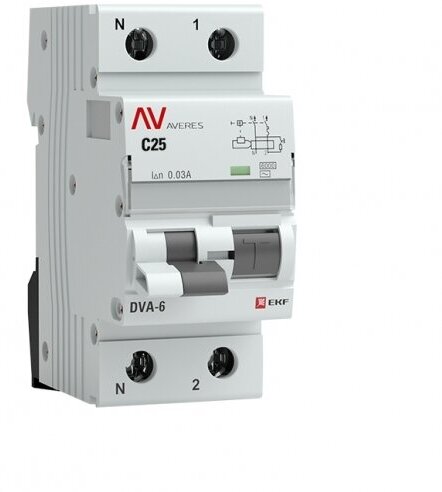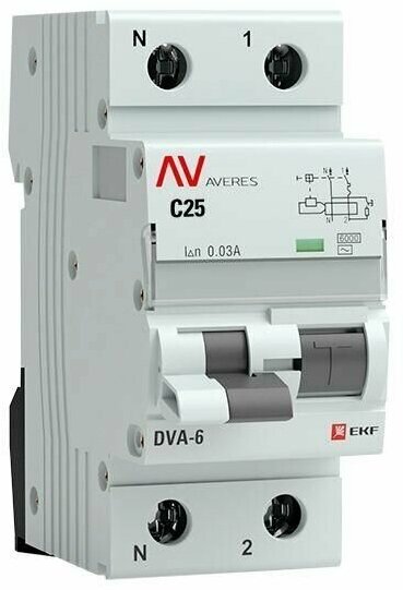 Автомат дифференциальный DVA-6 1P+N 25А (C) 30мА (AC) 6кА AVERES rcbo6-1pn-25C-30-ac-av EKF