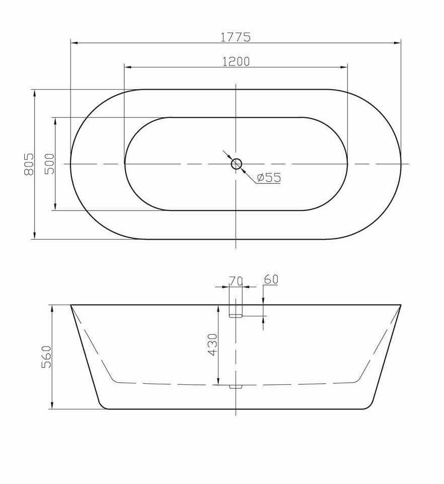 Акриловая ванна BelBagno 1775x805x560 мм BB306-1775 информация: