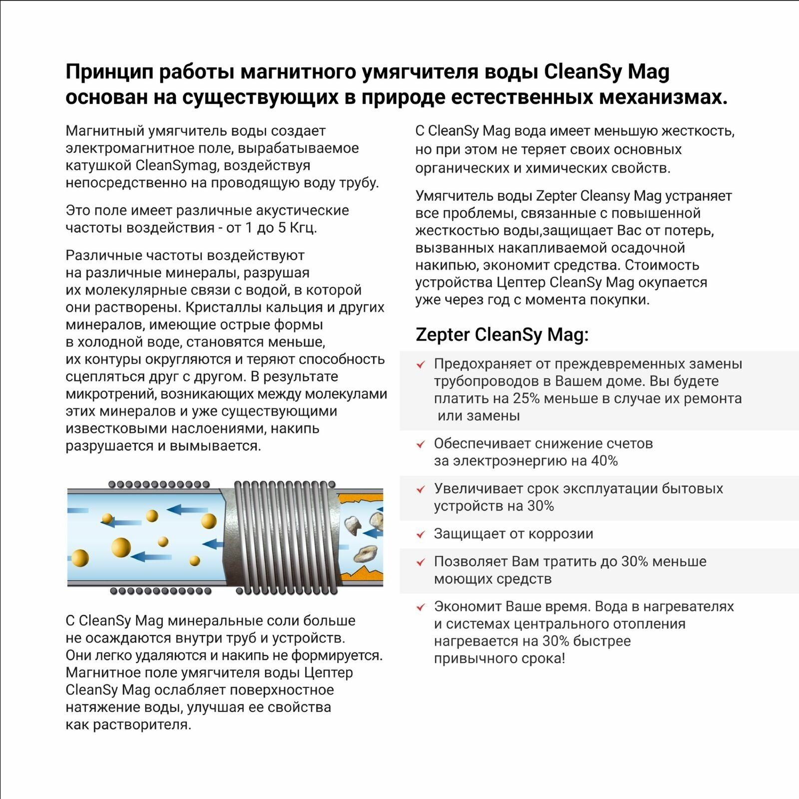 Магнитный умягчитель воды CLEANSYMAG ZEPTER информация: