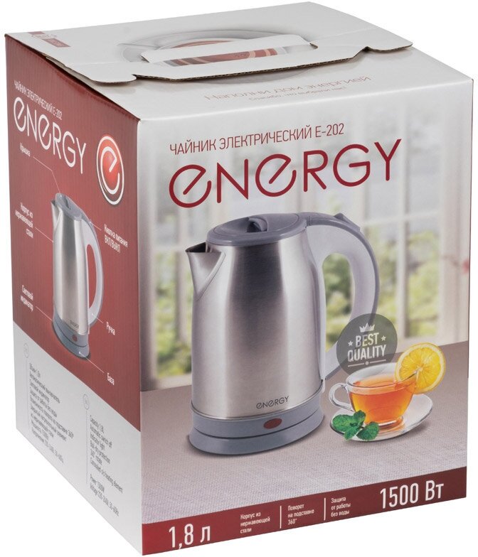 Чайник 1,8л Energy 1500Вт стальной, поворот 360, защита от раб без воды (диск)