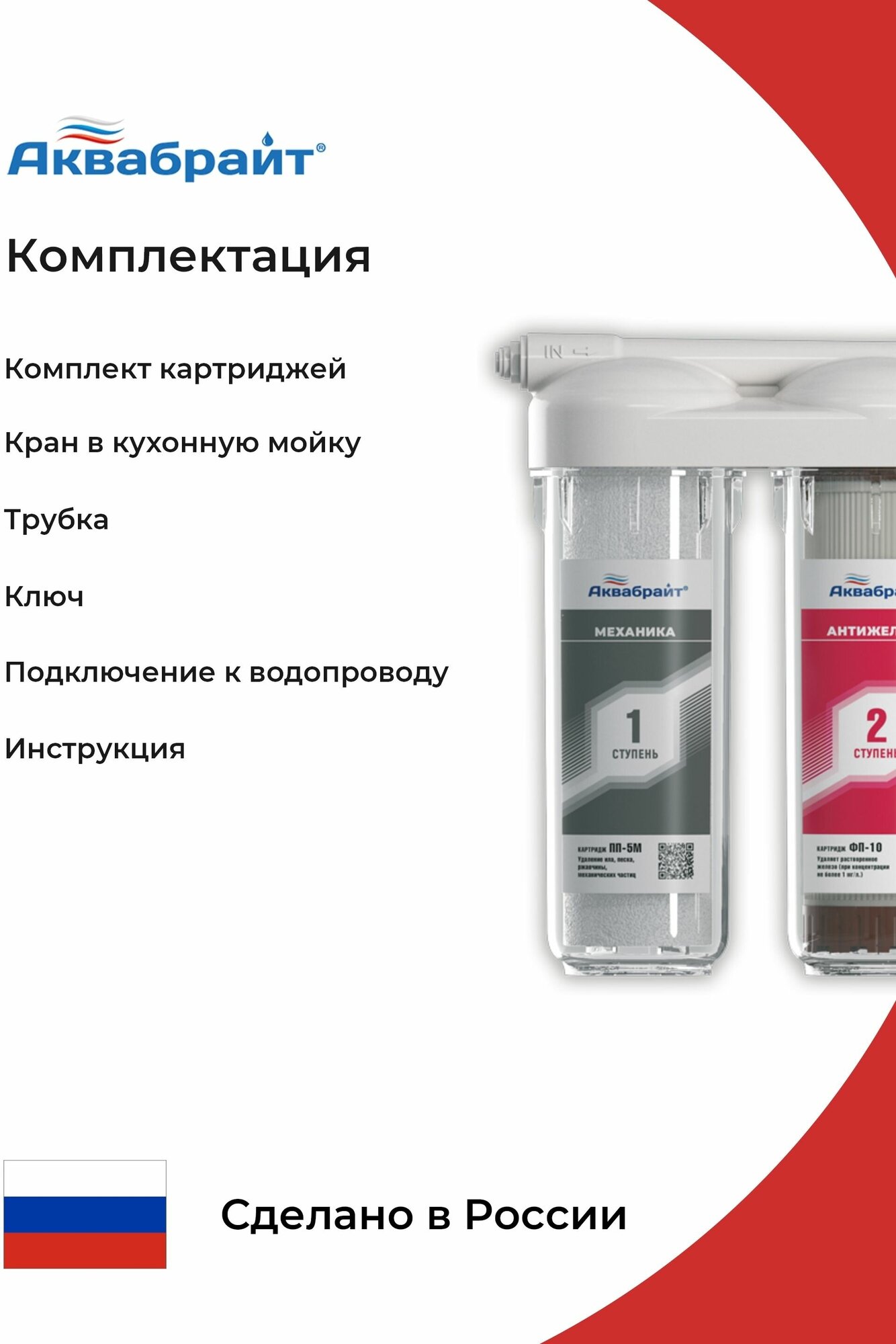 Трехступенчатая система очистки воды под мойку с отдельным краном. Аквабрайт абф- триа Антижелезо