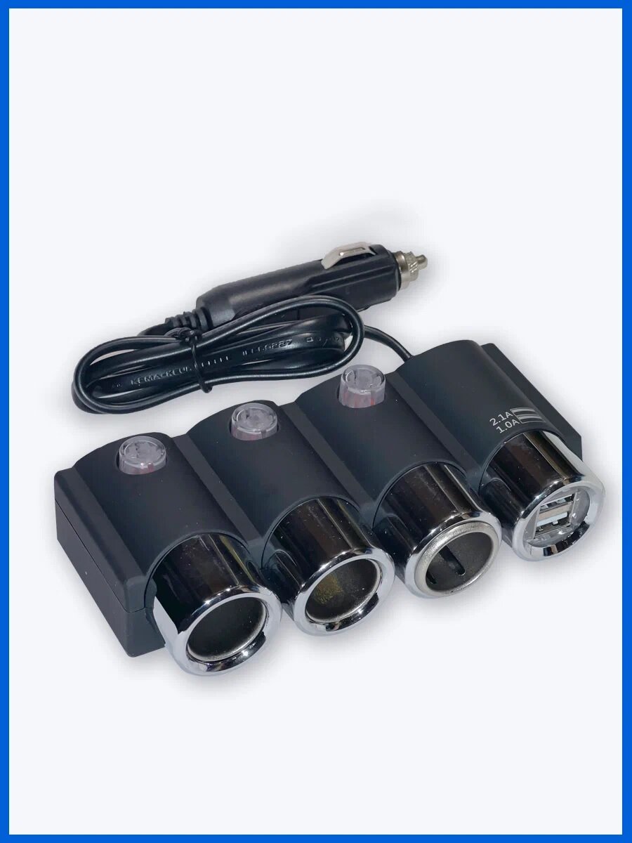 Автомобильное зарядное устройство разветвитель прикуривателя 24 / 12v на четыре гнезда + USB (1000 MA) MyPads