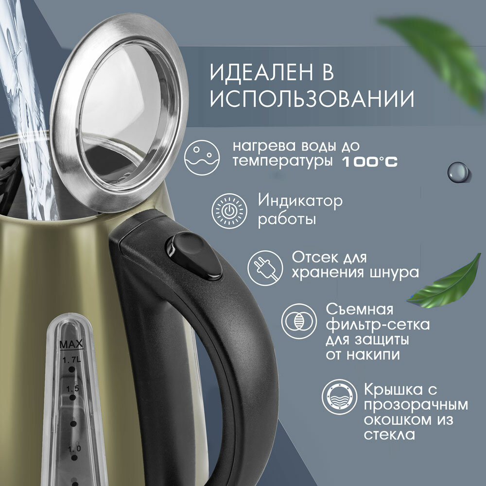 Чайник электрический ENDEVER Skyline KR-228S steel (Объем 1,7 л, мощность 2200 Вт, Объем 1,7 л) (90030)