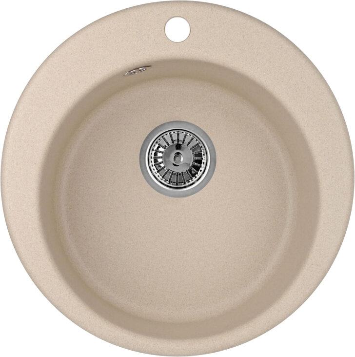 10 цен на Мойка кухонная Domaci Солерно EMQ-1475.C сардоникс, бежевая, 37х37 см, круглая, кварцевая, встраиваемая