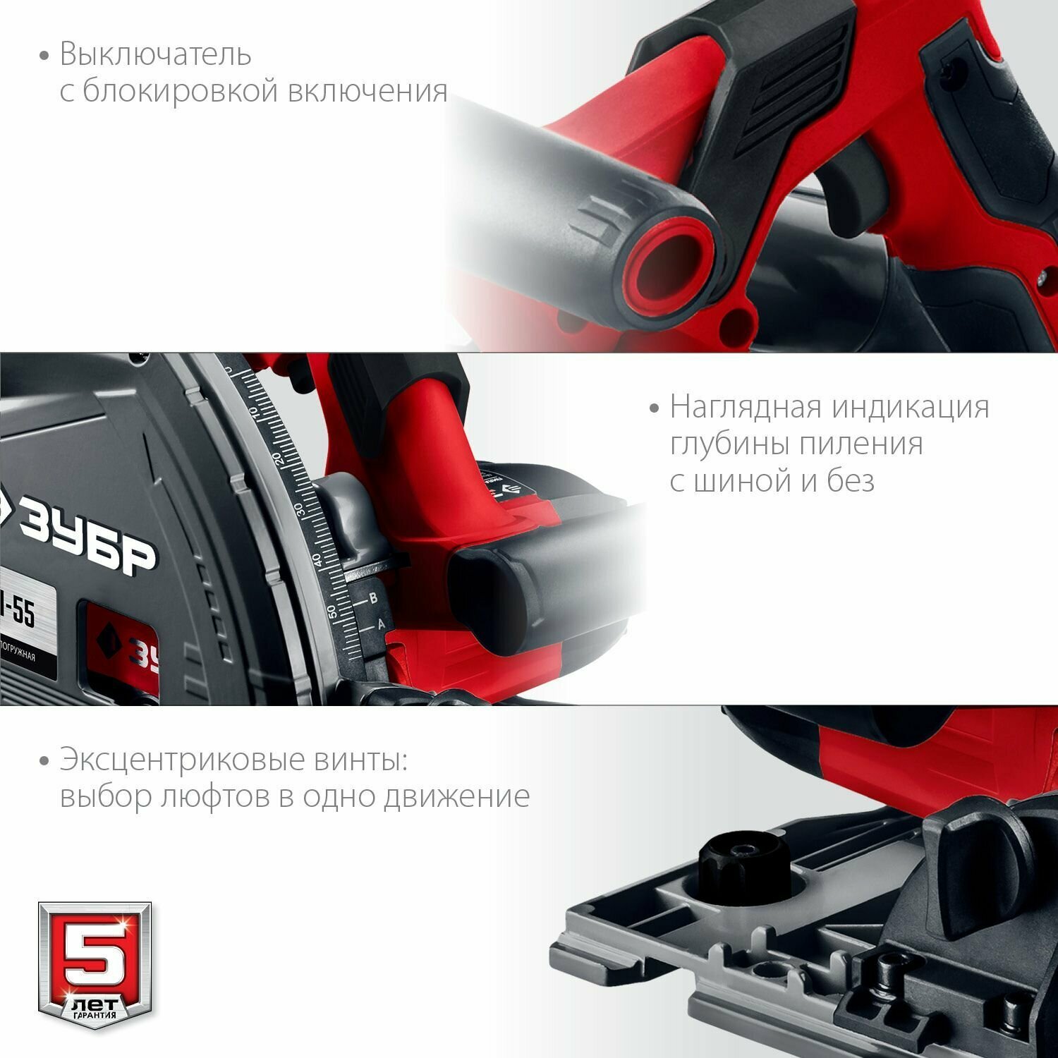 Пила погружная с шиной, 90-55 мм, диск 165 мм, 1200 Вт, ЗУБР