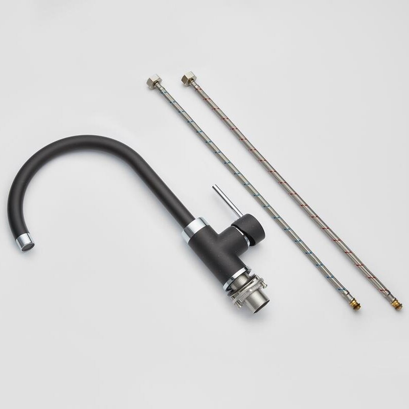 Смеситель для кухни Emar / Емар 3004.12 однорычажный гибкая подводка латунь оникс высота 37см излив 21см / кран для раковины