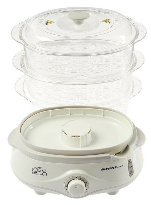 FIRST AUSTRIA Пароварка электрическая First, серый, 3 уровня, 11 л, 1000 Вт, таймер, автовыключение