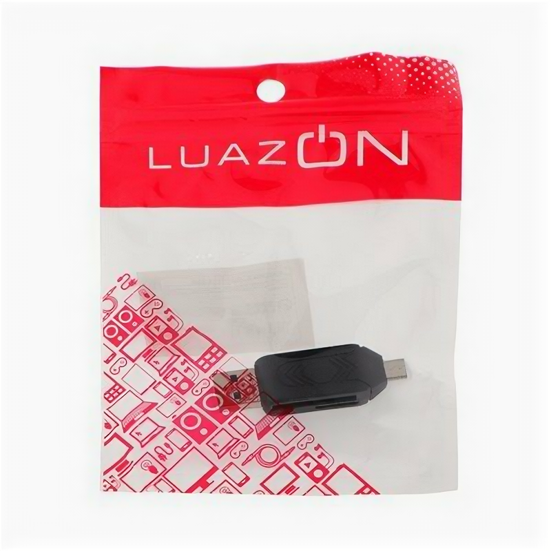 10 цен на Картридер-OTG LuazON LNCR-001, подключение microUSB и USB, слоты SD microSD, черный, Luazon Home