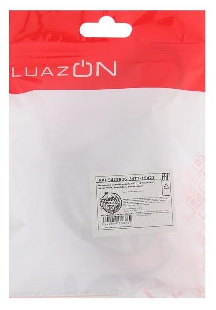 Наушники LuazON VBT 1.10 "Молния". вакуумные. микрофон. фиолетовые 5415826 информация: