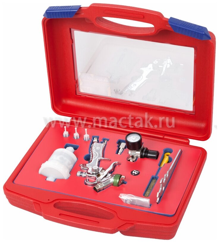 Краскопульт низкого давления, сопло 0,8 мм, мини, верхний бачок, кейс мастак 675-008C информация: