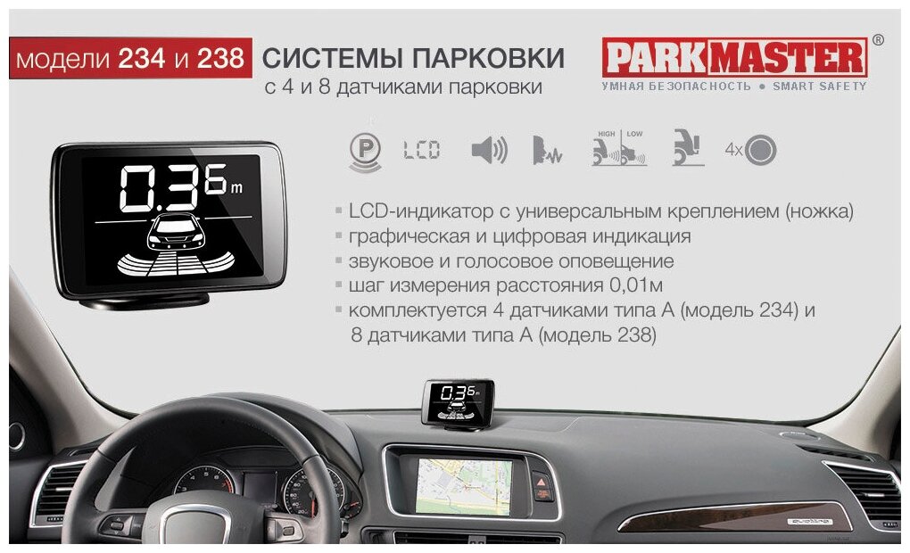 Парковочный радар Parkmaster 234-Silver (4 серебристых датчика, голосовой) информация: