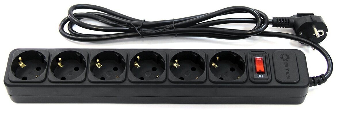 5bites Сетевой фильтр 5bites SP6B-118 6S, 6 розеток, 1.8 м, 10 А, 3х0.75 мм2, с выкл., черный