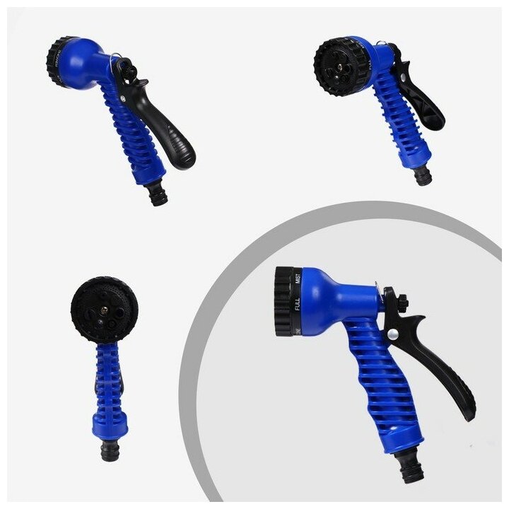 Чудо-шланг, латекс, L = 2.5 — 7.5 м, 2-слойный, нейлоновая оплётка, распылитель 7 режимов, переходник 12 мм , 19 мм