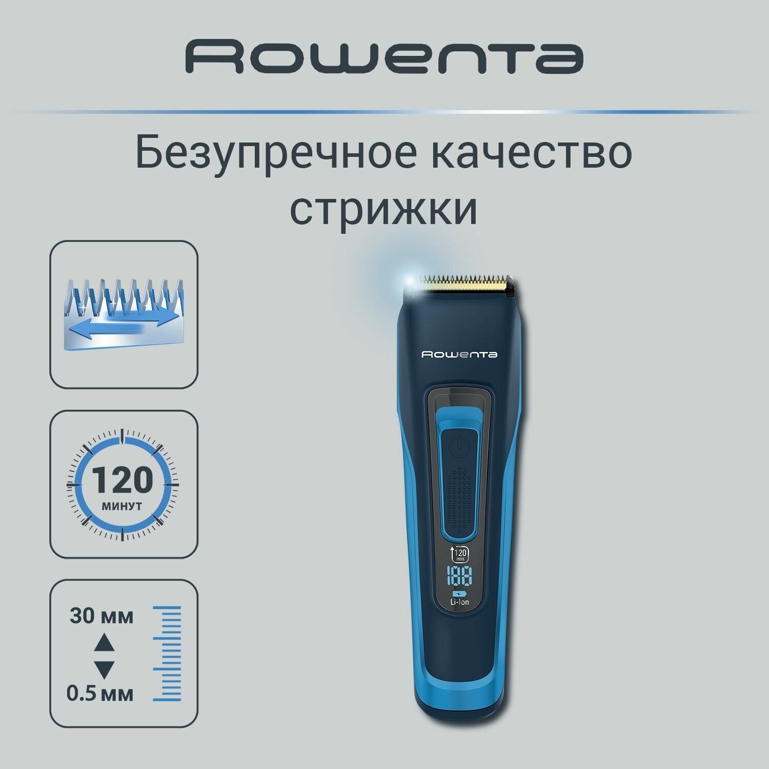 Машинка для стрижки Rowenta TN5241F4, 0.5-30 мм, нерж. сталь, 220В/АКБ, синяя