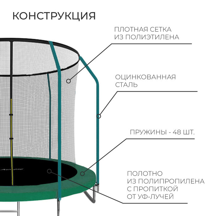 Батут ONLITOP, диаметр 244 см, с сеткой высотой 173 см, максимально допустимый вес 150 кг, цвет зелёный информация: