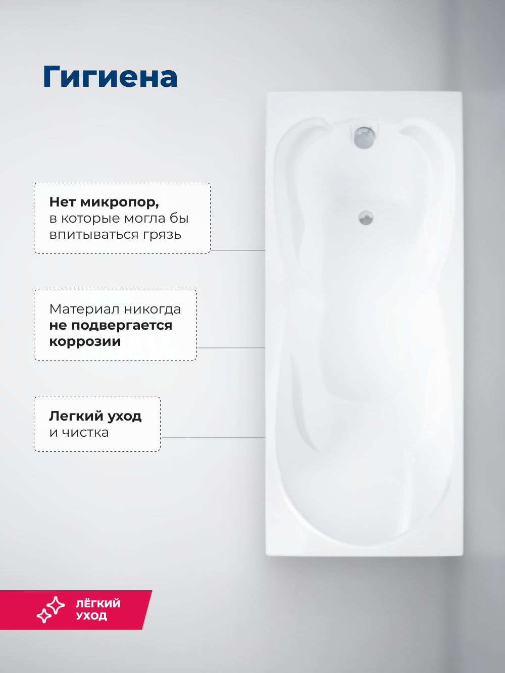 Акриловая ванна ARAGUT Кама 160х70 прямоугольная, в комплекте с каркасом, белая