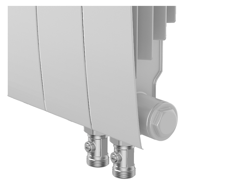 БиМеталлический радиатор Royal Thermo Biliner Bianco Traffico 350 V \ 08 секций \ с нижним правым подключением, термовентиль тип Click информация: