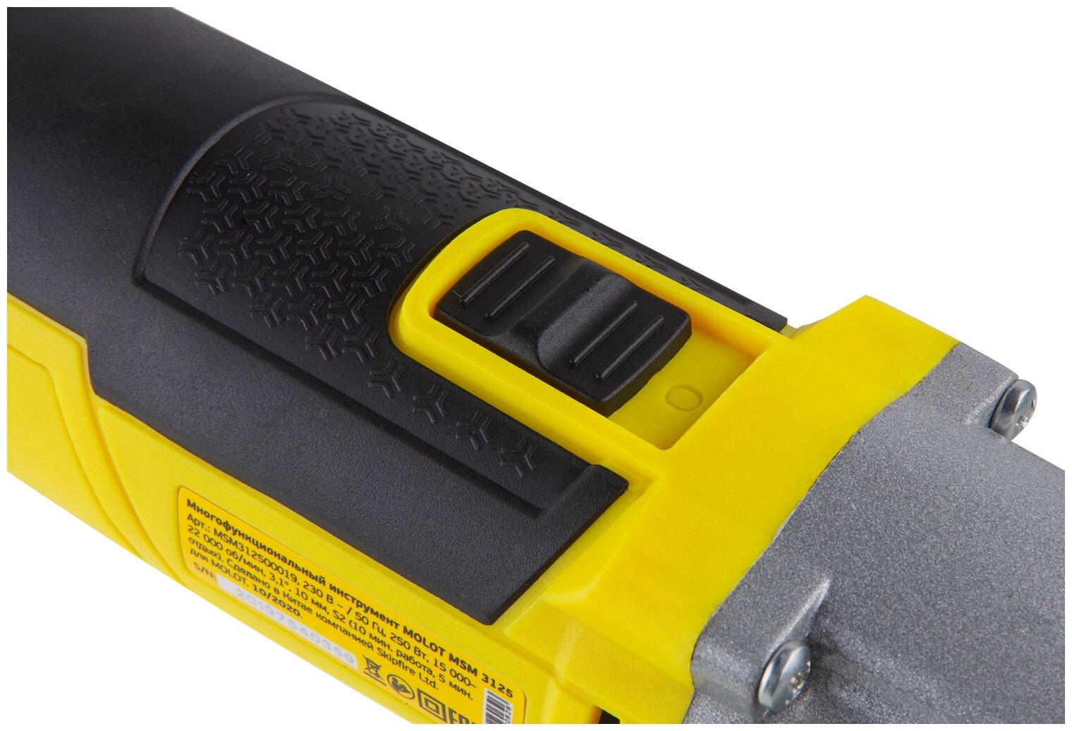 Многофункциональный инструмент (реноватор) MOLOT MSM 3125 в кор. 250 Вт, 15000 - 22000 об/мин. (Градус угла колебаний 3.1 °, посадка 10 мм) (MSM312500