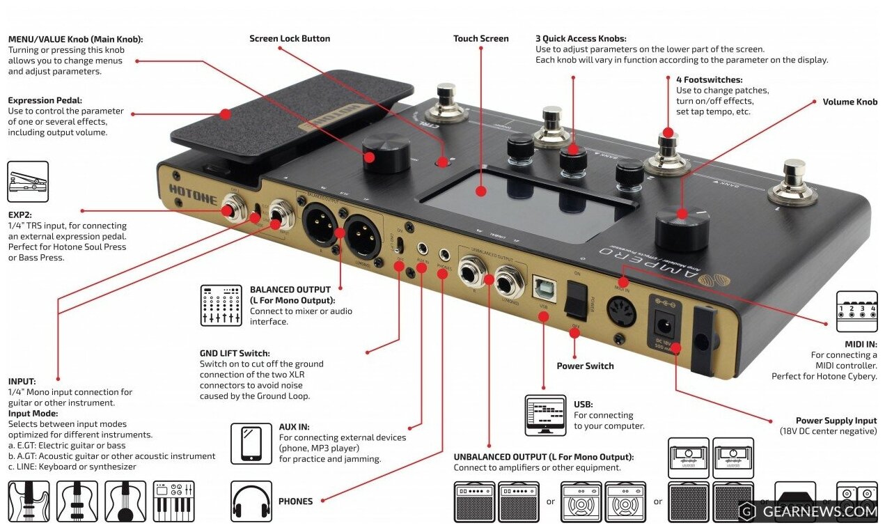 Hotone Ampero напольный гитарный процессор эффектов информация: