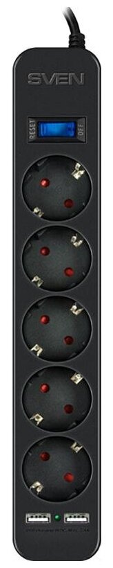 Сетевой удлинитель Sven Sf-05lu 1,8 м (5 евро розеток,2*USB(2.4А)) черный, цветная коробка