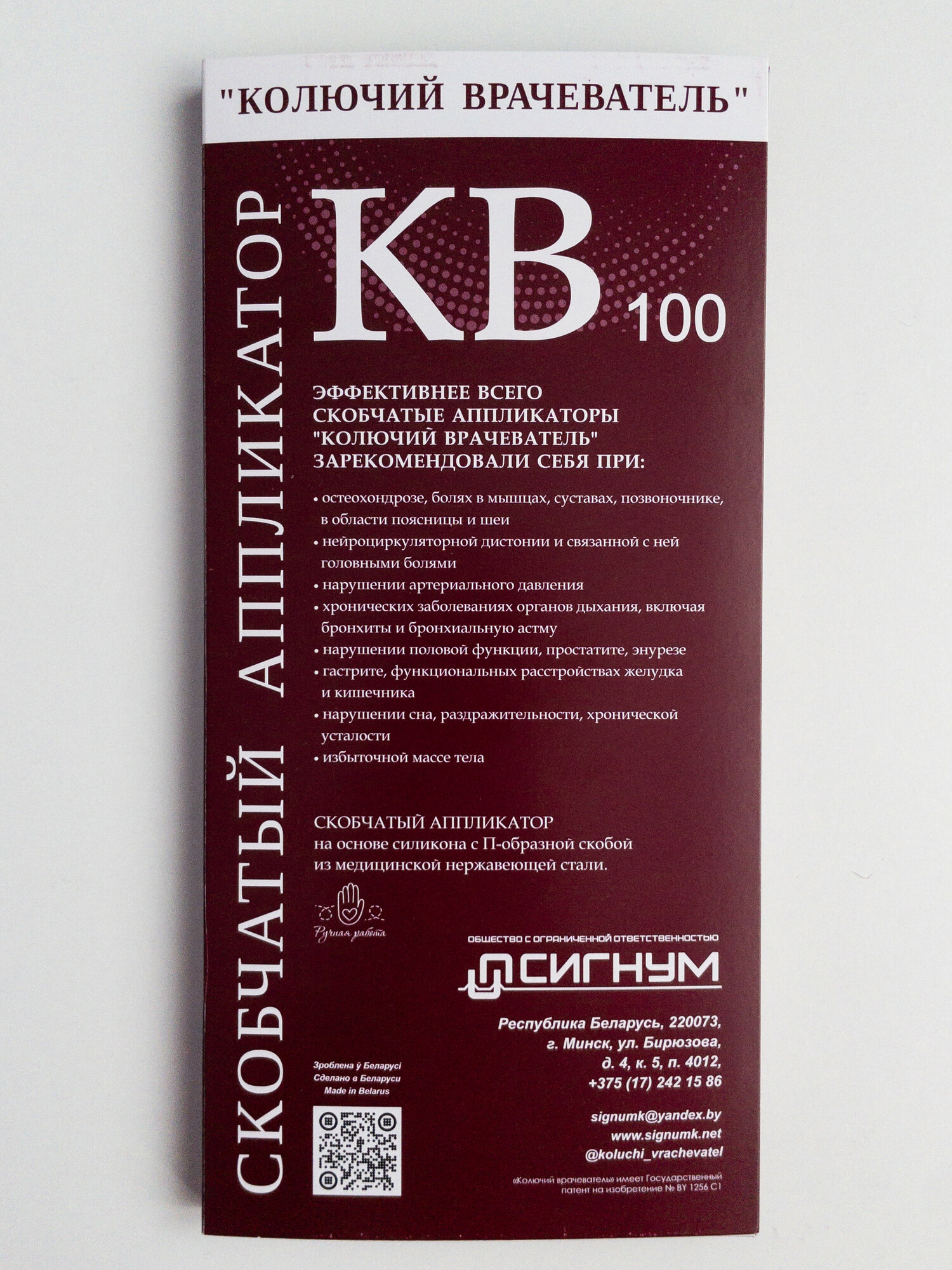 Аппликатор скобчатый "Колючий врачеватель" КВ-100Л (10х20см) на силиконовой основе информация:
