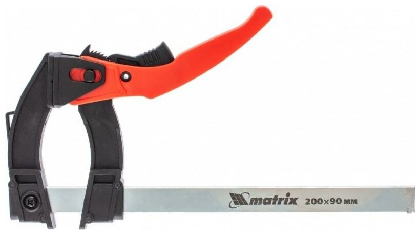 Отзывы на Струбцина реечная быстрозажимная, пластиковый корпус рычажно-храповой механизм, 200 х 90 х 290 мм, штанга 5 х 20 мм Matrix (20736)