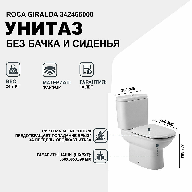 Унитаз компакт Roca Giralda 342466000 без бачка и сиденья информация: