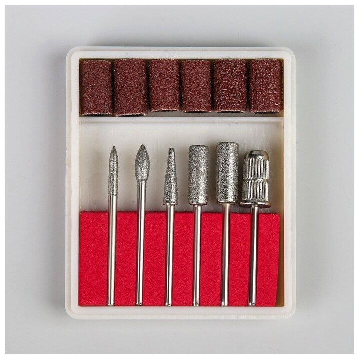 10 цен на Фрезы с алмазным напылением, с насадками для педикюра, в пластиковом органайзере, 12 шт