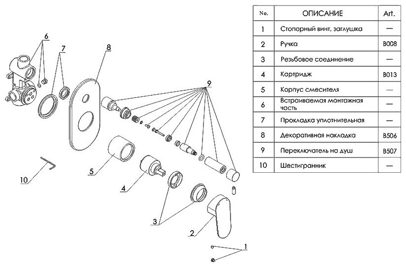 Смеситель для ванны и душа WasserKRAFT Donau 5341 встраиваемый 9061540