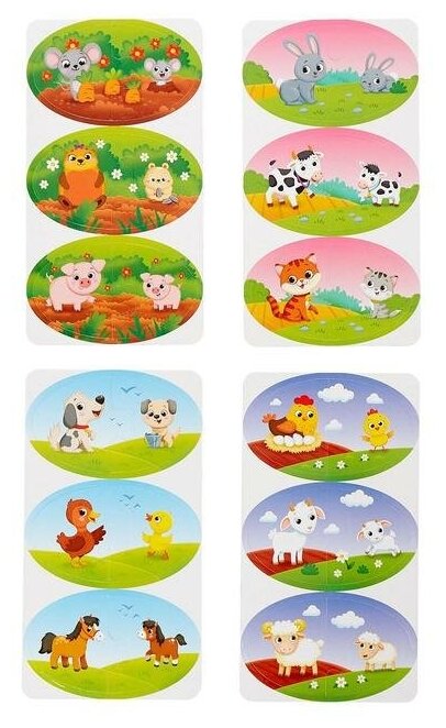 Парные IQ-пазлы «Мамы и малыши», 12 пазлов, 24 детали