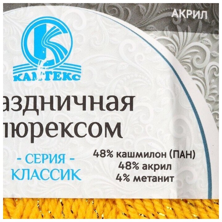 10 цен на Пряжа "Праздничная" 48% кашмилон, 48% акрил, 4% метанит 160м/50гр (104 жёлтый)(10 шт.)