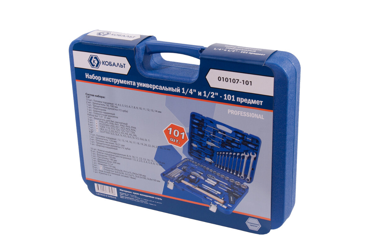 Набор универсального инструмента 1/4 и 1/2, 101шт, кейс кобальт 010107-101