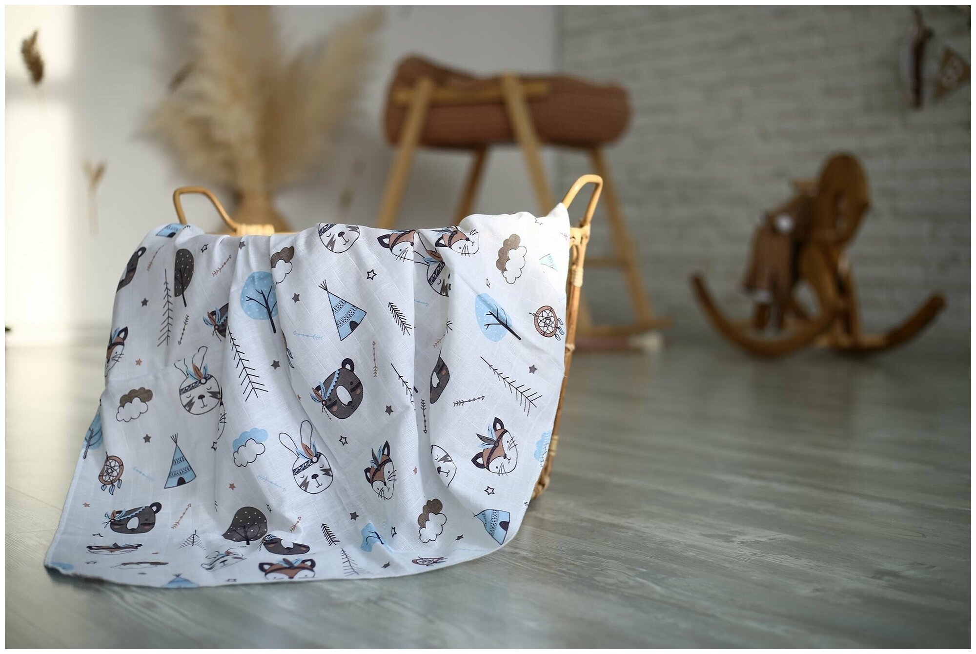 Пеленка из муслина, рис.: "Жители леса", 90 х 130 см., 100% Хлопок / Пелёнка текстильная