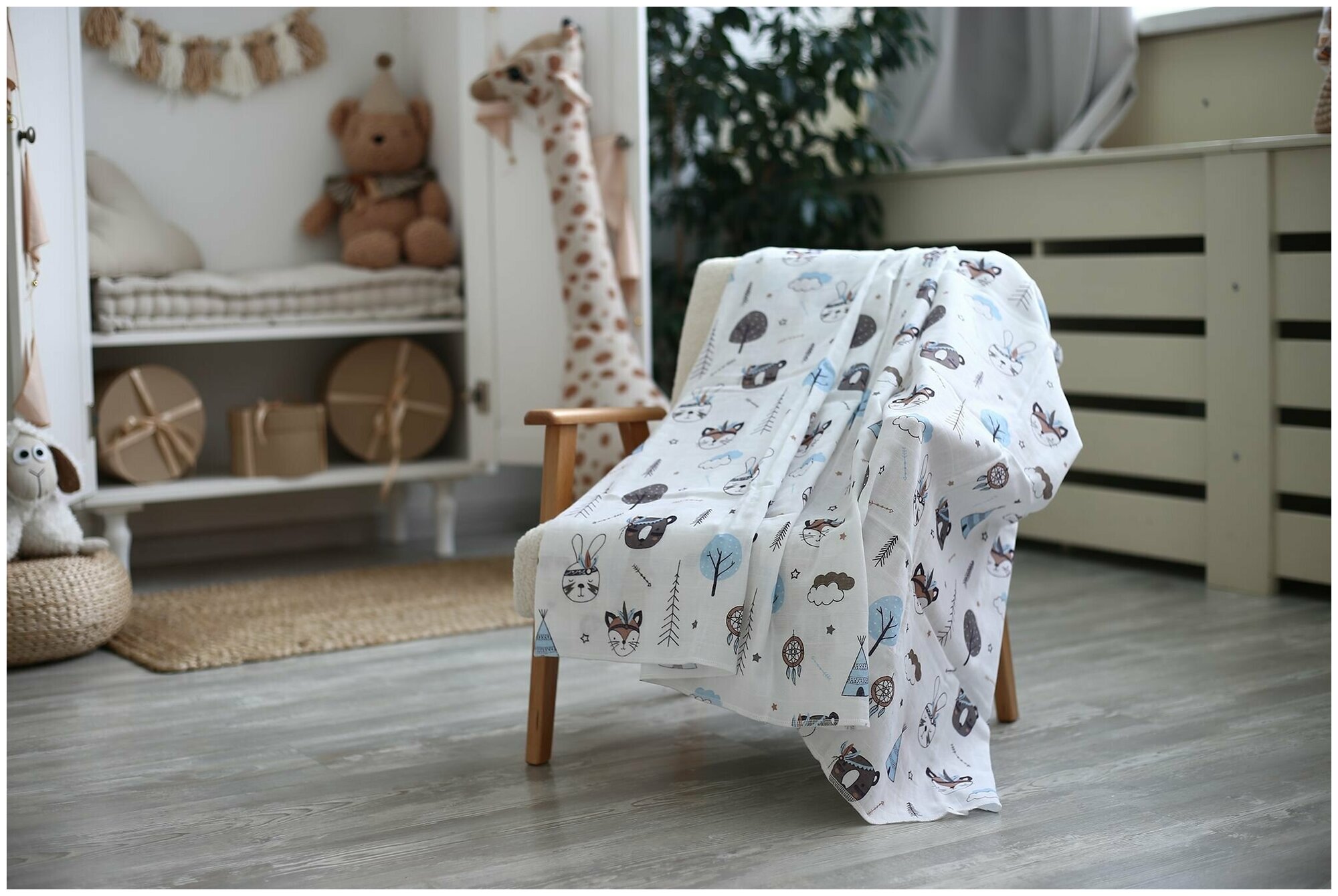 Пеленка из муслина, рис.: "Лесные жители", 90 х 130 см., 100% Хлопок / Пелёнка текстильная