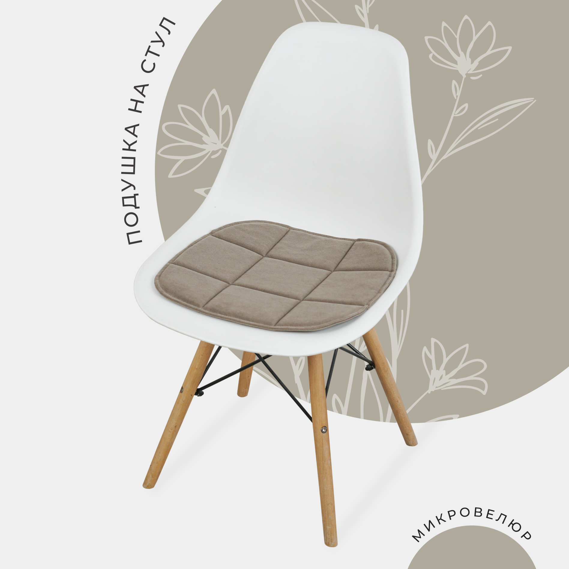 Подушка на стул из микровелюра, 38x39 см, кофейный информация: