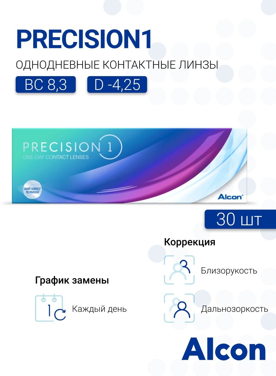 Контактные линзы Alcon, Precision1, Однодневные, -4.25 / 14,2 / 8,3 / 30 шт. информация:
