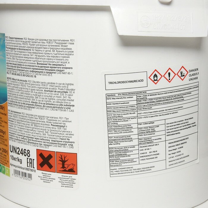 Многофункциональные 3 в 1 медленнорастворимые стаб. таблетки хлора 80% для бассейна, табл.200гр., 5кг. CHEMOFORM