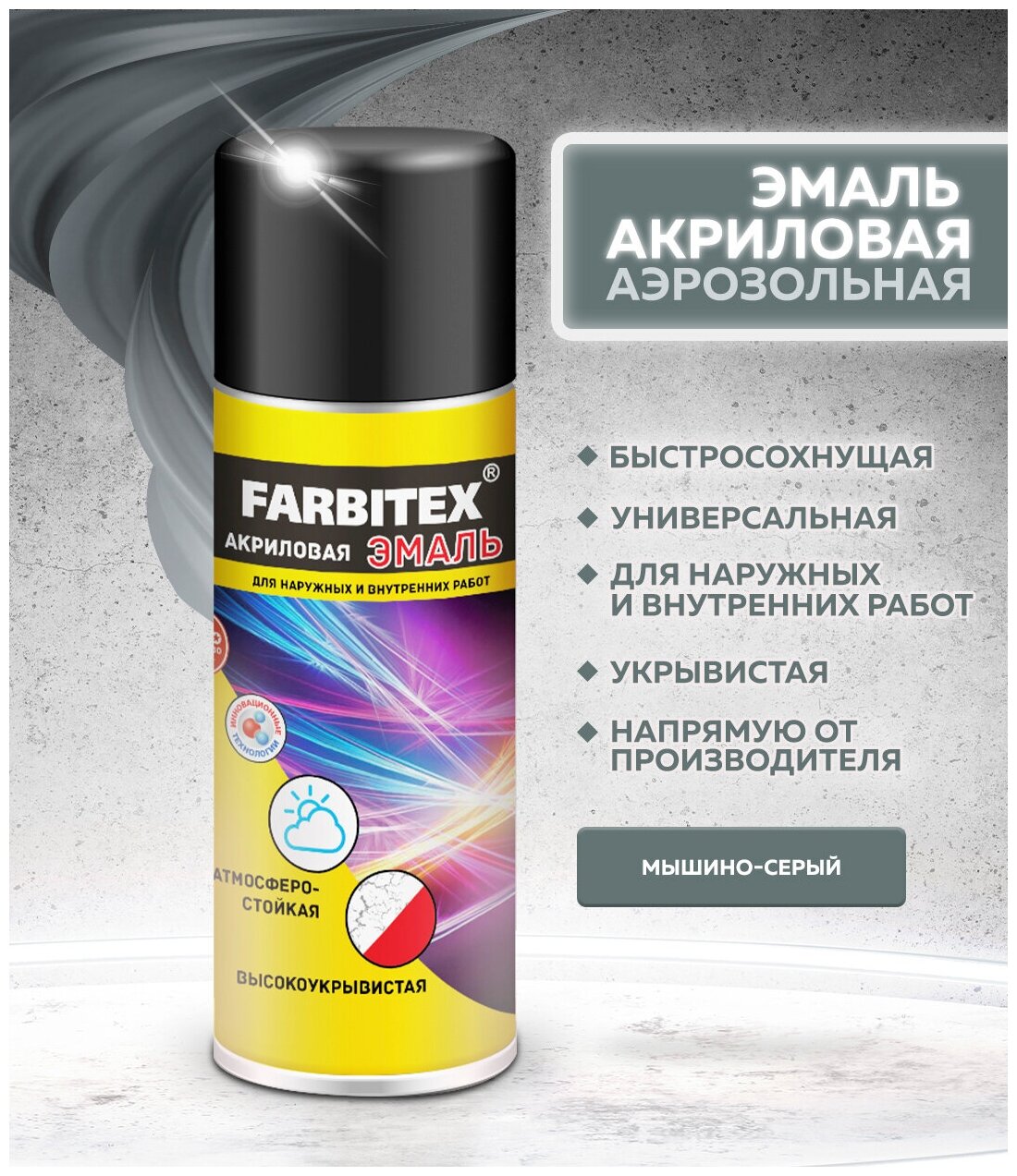 Эмаль акриловая аэрозоль FARBITEX (Артикул: 4100008940; Цвет: Мышино-серый; Фасовка = 0,52 л)