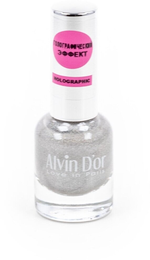 Alvin D'or / Алвин Дор Лак для ногтей Holographic 703 серебристый в стеклянном тюбике 12мл / покрытие для маникюра и педикюра