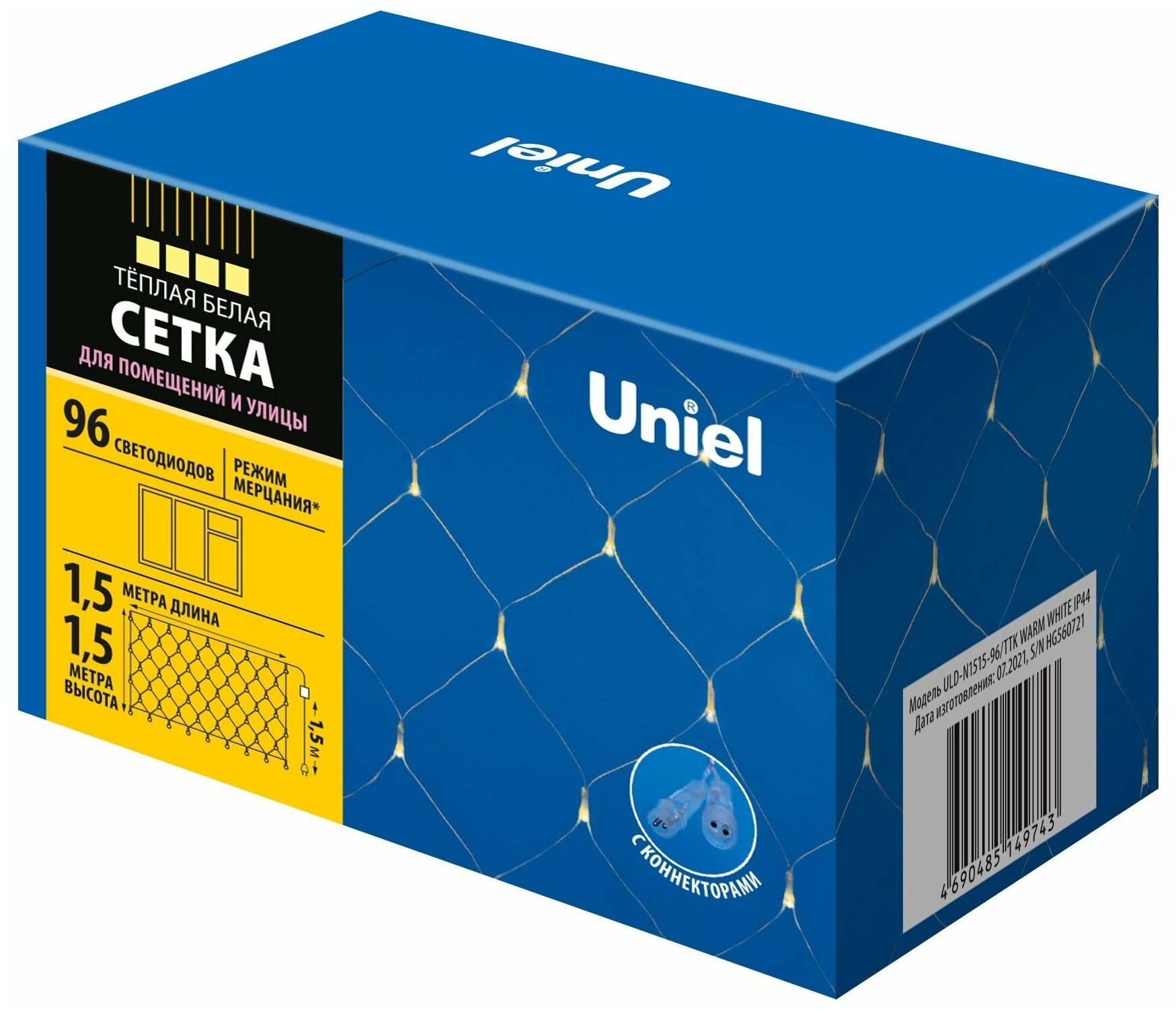 Сетка светодиодная Uniel Uld-n1515-96/ttk Warm White IP44 с эффектом мерцания, 1,5х1,5м. Соединяемая