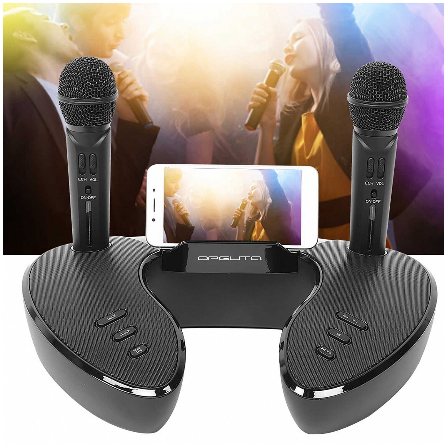 Караоке-система с беспроводными микрофонами с RGB подсветкой (2 микр, Bluetooth 5.0) OT-ERM14 Орбита