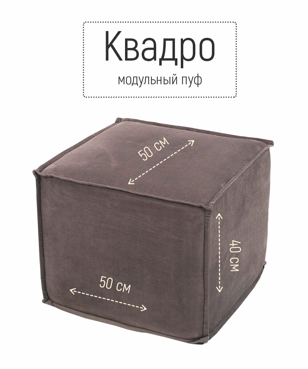 Пуф кресло модульный Квадро бескаркасный 50х50х40 для отдыха поролон велюр коричневый