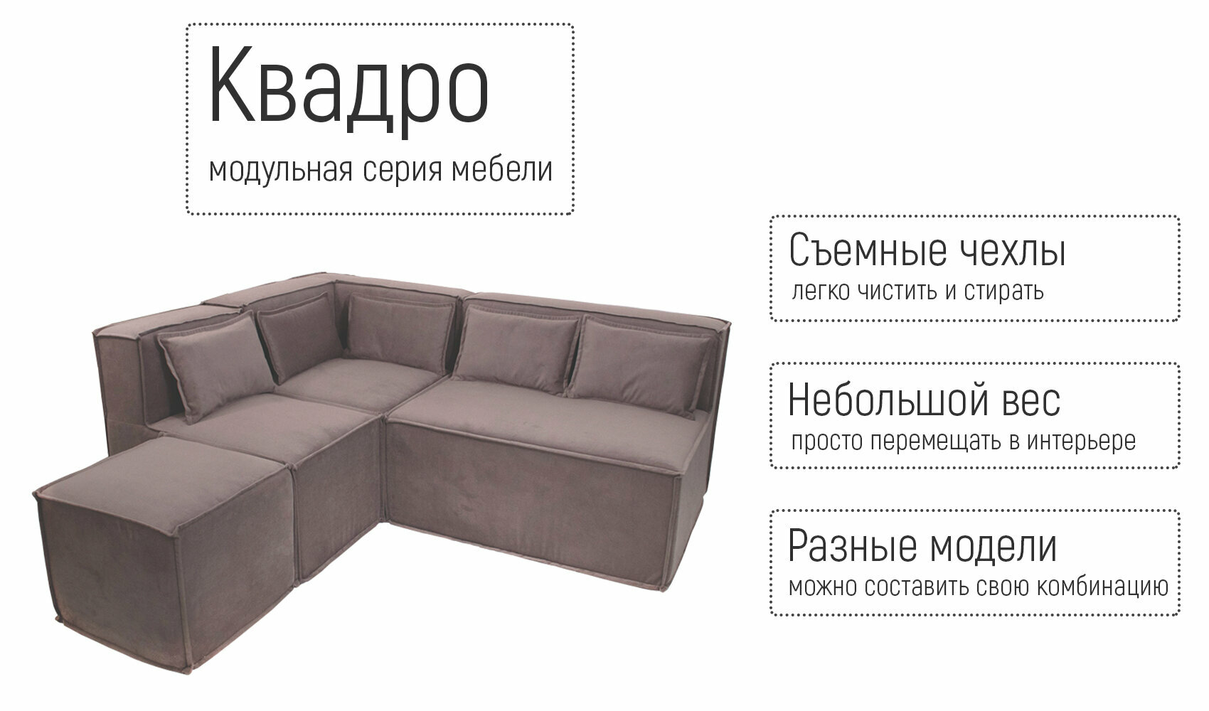 Пуф кресло модульный Квадро бескаркасный 50х50х40 для отдыха поролон велюр серый