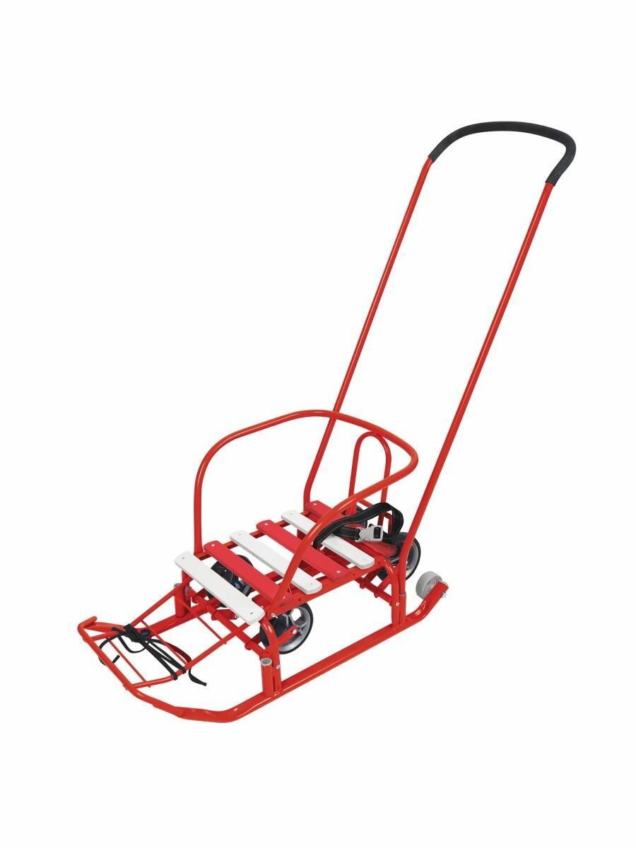 Санки детские с колесной базой, ручкой и спинкой Nika "Тимка 3К универсал+" (алый)